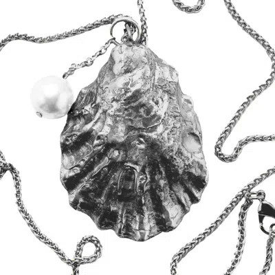 Men's Grey Small Curly Oyster Necklace - Gunmetal In Gray