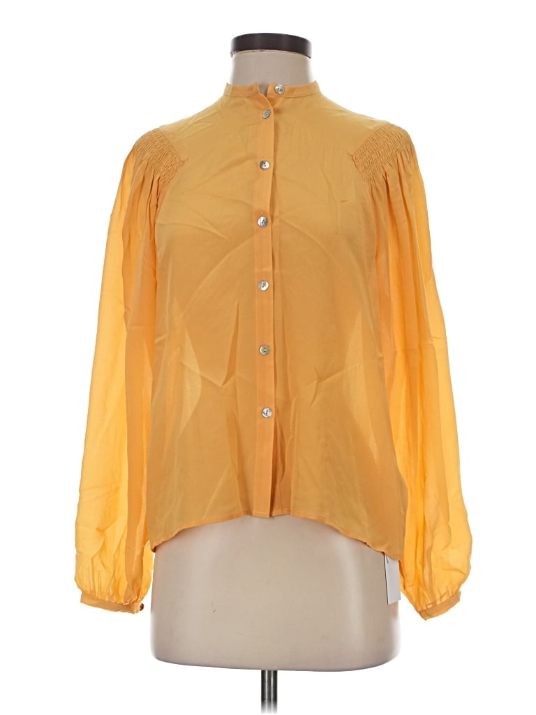 Long Sleeve Silk Top Yellow High Neck Tops