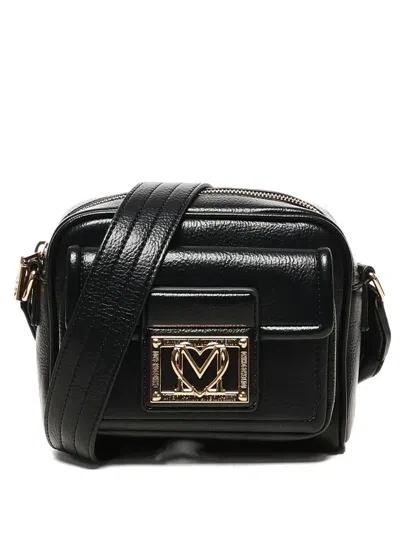 Rectangular Structured Shoulder Bag With Heart Emblem In Black