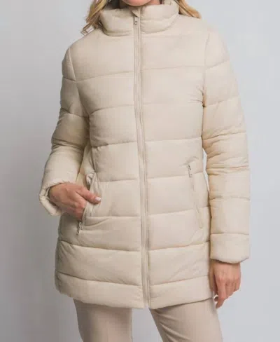Long Puffer Jacket In Cream In Multi