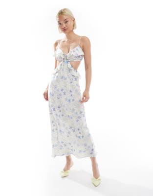 Cut-out Frill Maxi Dress In Multi