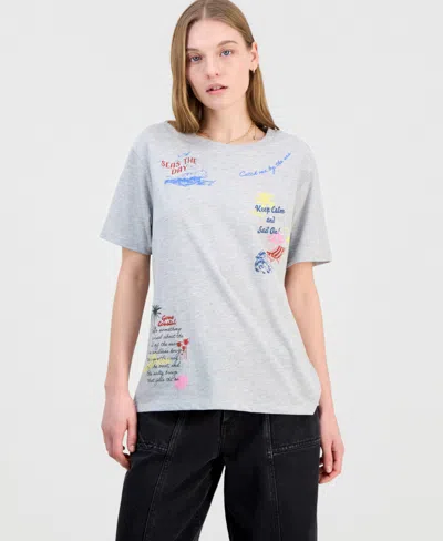 Juniors' Coastal Hit Crewneck Graphic T-shirt In Gray