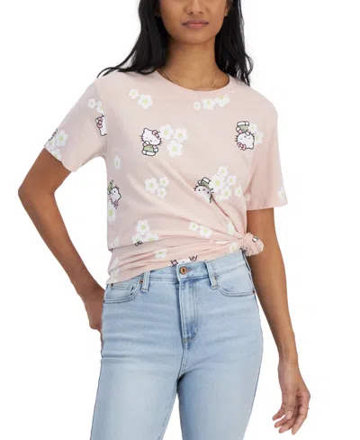 Juniors' Hello Kitty Crewneck T-shirt In Peach Whip