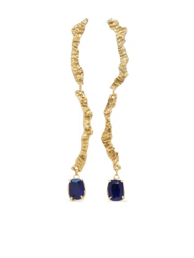 Zakia Textured Sapphire Earrings In Gold