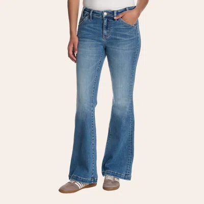 Women's Medium Wash Mid Rise Slant Pocket Flare Jeans In Blue