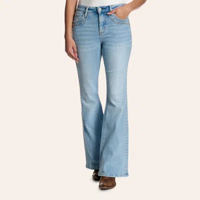 Women’s Light Wash High Rise Western Studded 33" Flare Jeans