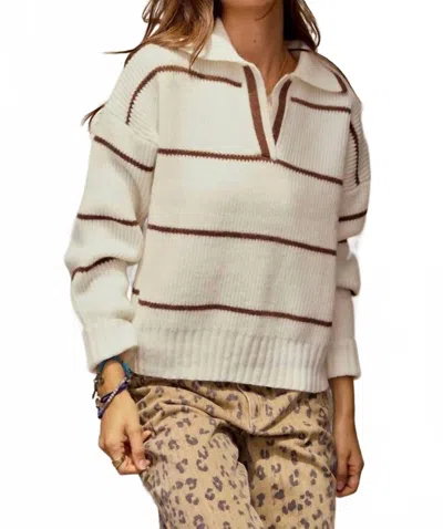 Luxe Relaxed Striped Knit Sweatshirt In Ivory Latte In Neutral