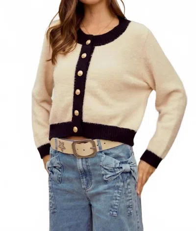 Soft Button Down Sweater Cardigan In Ivory Black In White