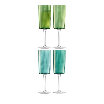 Gems Pleated-texture Glass Champagne Flutes Set Of Four In Jade