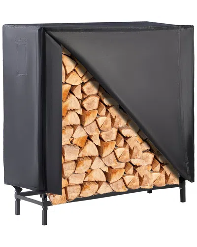 Heavy-duty Waterproof Outdoor Firewood Rack With Cover 4ft In Black