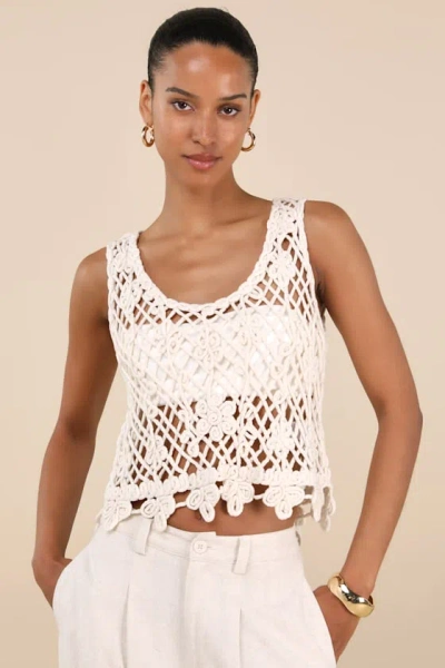 Taisia Cream Sheer Crochet Knit Tank Top In Black