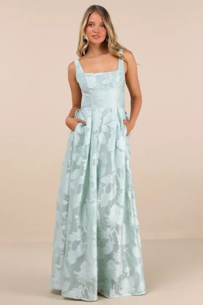Perfected Aura Sage Jacquard Tie-back Maxi Dress With Pockets In Green