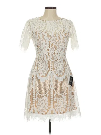 Teodora White Floral Applique Lace-up Midi Dress In Animal Print