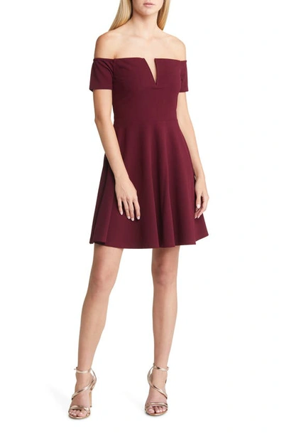 Play The Party Burgundy Off-the-shoulder Skater Dress In Plum Purple