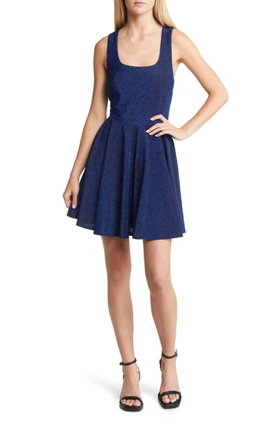 Best Date Ever Blue Metallic Skater Mini Dress