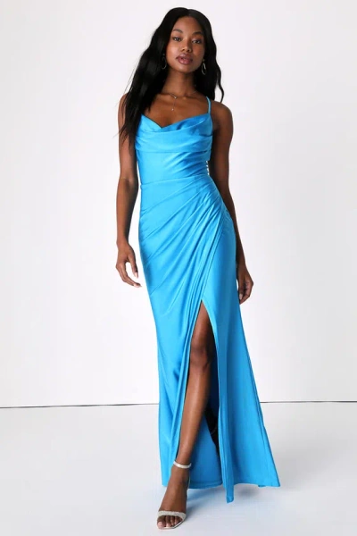 Attention Seeker Bright Blue Cowl Neck Maxi Dress