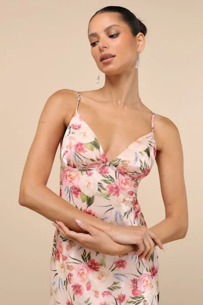 Alaia Blush Multi Floral Satin Backless Midi Dress