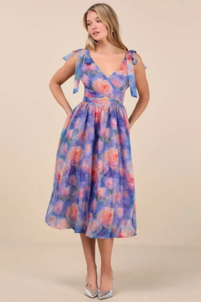 Flowering Day Dream Purple Floral Organza Midi Bubble Dress