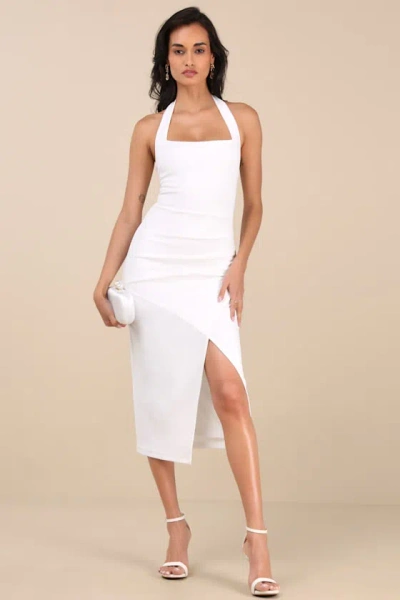 Divide And Contour White Ribbed Cutout Bodycon Midi Dress