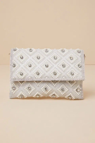 Sparkly Passion Silver Rhinestone Pearl Clutch