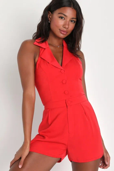 Dandy Darlin' Red Collared Button-front Tie-back Vest Tank Top