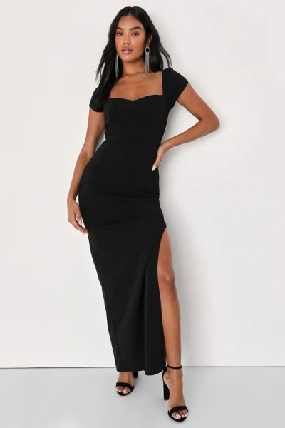 Essential Invitee Black Cap Sleeve Column Maxi Dress
