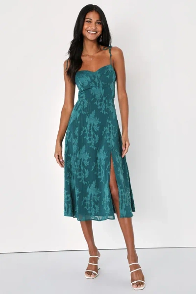 Loveliest Looks Emerald Green Jacquard Tie-strap Midi Dress