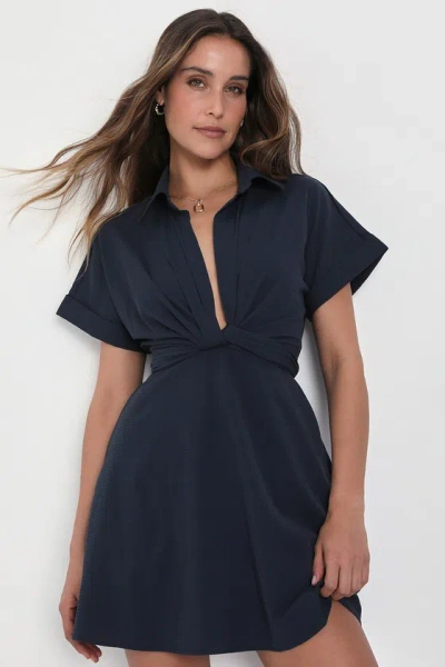 Breeze By Navy Blue Tie-back Mini Dress With Pockets