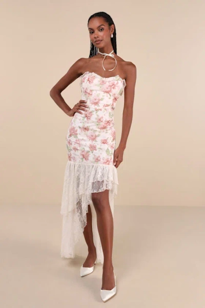 Prettiest Entrance Blush Pink Floral Lace Strapless Maxi Dress
