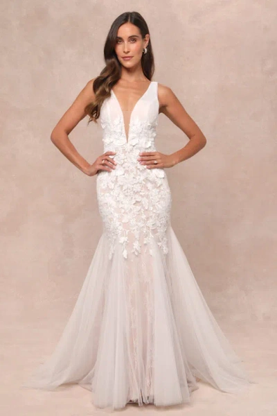 Exceptional Vow White Tulle Lace Applique Mermaid Maxi Dress