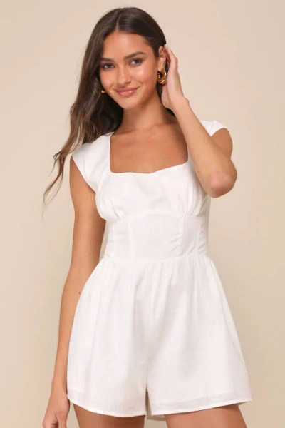 Elegant Babe White Linen Bustier Cap Sleeve Romper