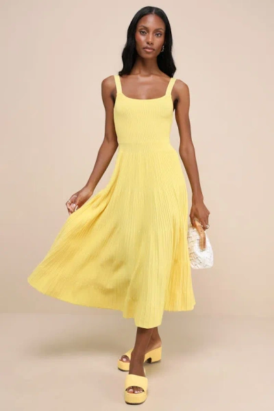 Iconic Ways Yellow Ribbed Sleeveless Tiered Sweater Midi Dress