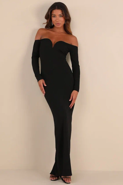 Opulent Perfection Black Long Sleeve Off-the-shoulder Maxi Dress