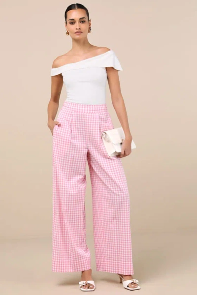 Delphine Pink And White Gingham Wide-leg Pants