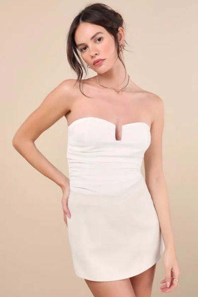 Noam Cream Twill Mini Skirt In White