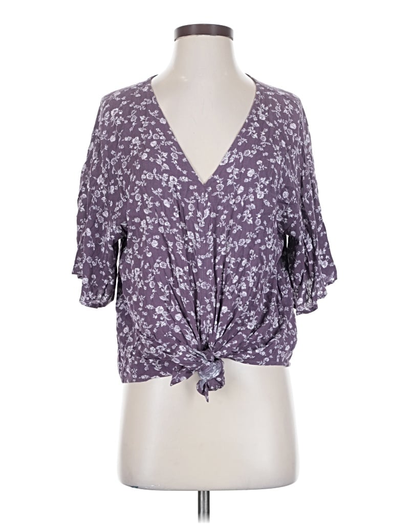 Pre-owned Short Sleeve Top Purple V Neck Tops