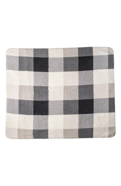 Faux Shearling Throw Blanket In Grey Plaid Combo