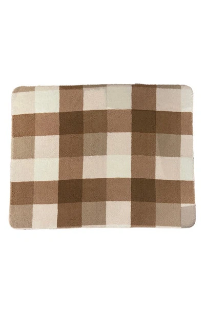 Faux Shearling Throw Blanket In Taupe Plaid Combo