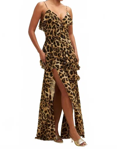 Hits The Spot Ruffle Maxi Dress In Leopard In Multi
