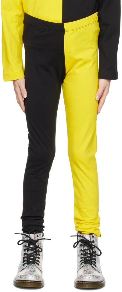 Kids Black & Yellow Color Block Leggings In Black/yellow