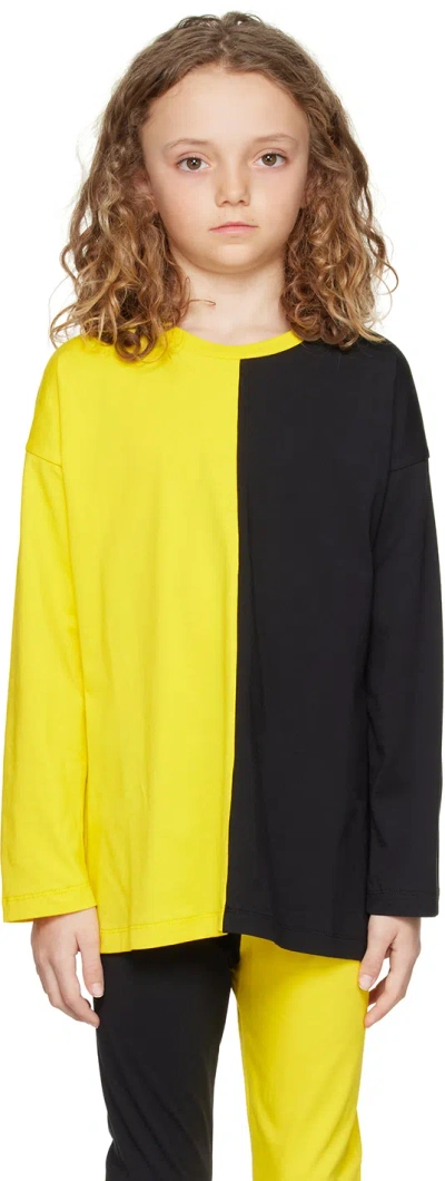 Kids Yellow & Black Color Block Long Sleeve T-shirt In Black/yellow
