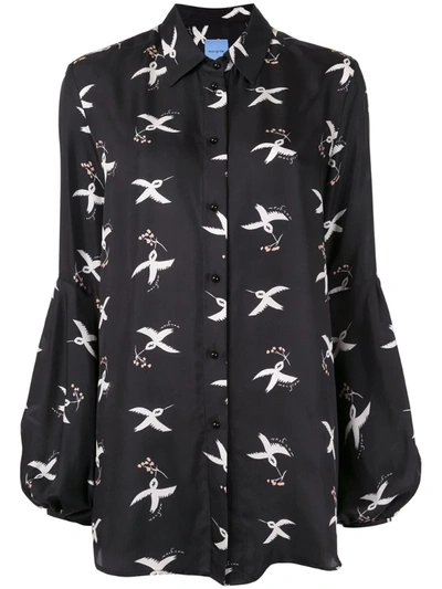 Bird Print Puff Sleeve Blouse In Black