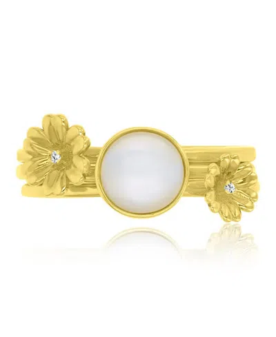 Diamond (0.01 Ct. T.w.) & Imitation Pearl Stackable Ring In 14k Yellow Gold Over Sterling Silver