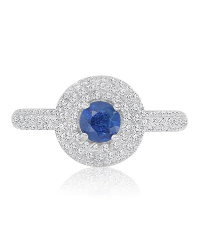 Sapphire (1 Ct. T.w.) & Diamond (0.138 Ct. T.w.) Halo Ring In 14k White Gold