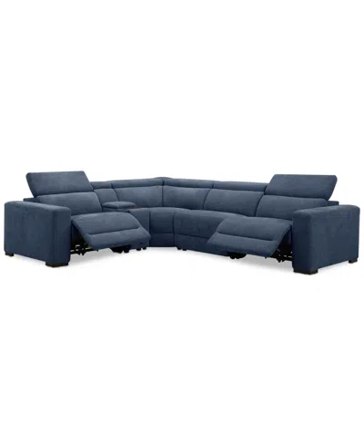 Nevio 5-pc. Fabric Power Headrest L-shape Sectional And Console With 2 Power Motion Chairs In Midnight