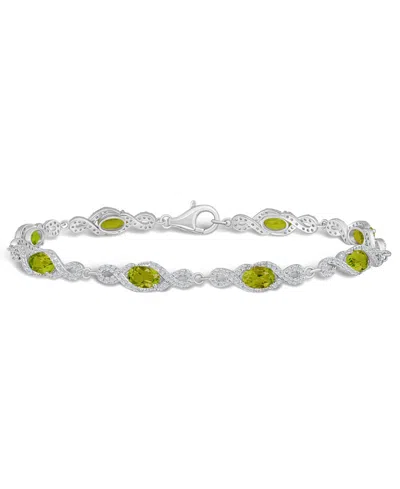 Peridot (1 1/3 Ct. T.w.) And White Topaz (1/5 Ct. T.w.) Trillion Halo Necklace In 10k Gold