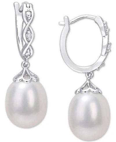 Cultured Freshwater Pearl (8mm) & Diamond Accent Dangle Hoop Earrings In Sterling Silver