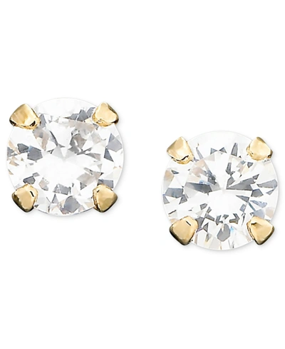 Kids' Children's Round Cubic Zirconia Stud Earrings In 14k Gold