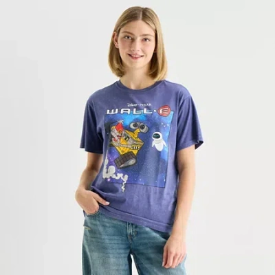 Pixar Boyfriend Womens Juniors Crew Neck Short Sleeve Loose Fit Wall-e Graphic T-shirt In Blue