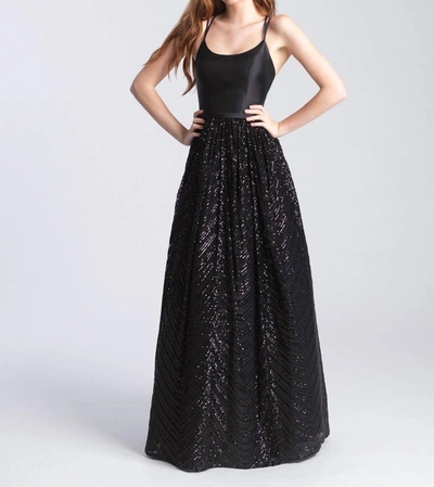 Sequin Placement Print Gown In Black
